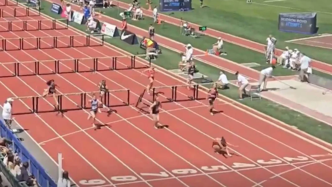 Atleta vence prova de 100m com barreiras mesmo após tropeçar e cruzar a linha com cambalhotas